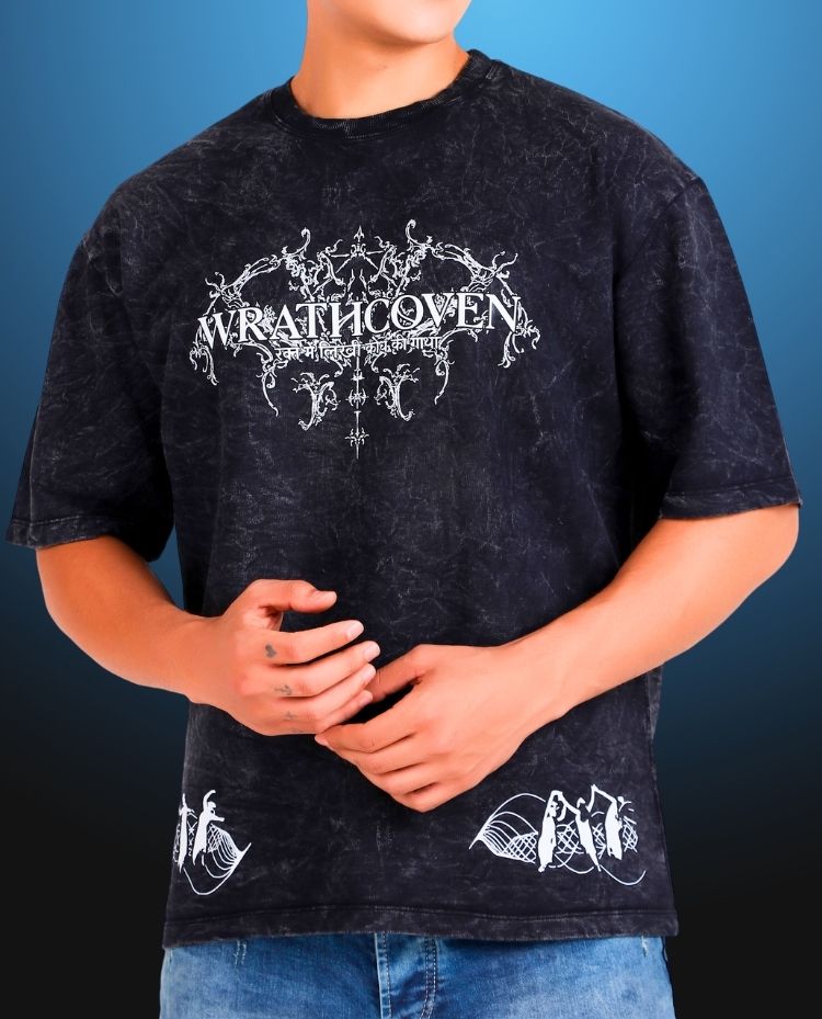 Wrathcoven Acid Wash Oversized Graphic T-Shirt – 𝐁𝐥𝐚𝐜𝐤 𝐒𝐭𝐫𝐞𝐞𝐭𝐰𝐞𝐚𝐫 𝐄𝐝𝐢𝐭𝐢𝐨𝐧