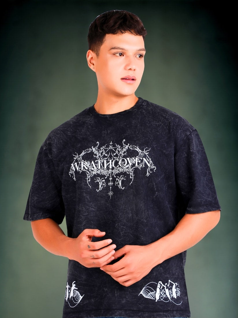 Wrathcoven Acid Wash Oversized Graphic T-Shirt – 𝐁𝐥𝐚𝐜𝐤 𝐒𝐭𝐫𝐞𝐞𝐭𝐰𝐞𝐚𝐫 𝐄𝐝𝐢𝐭𝐢𝐨𝐧